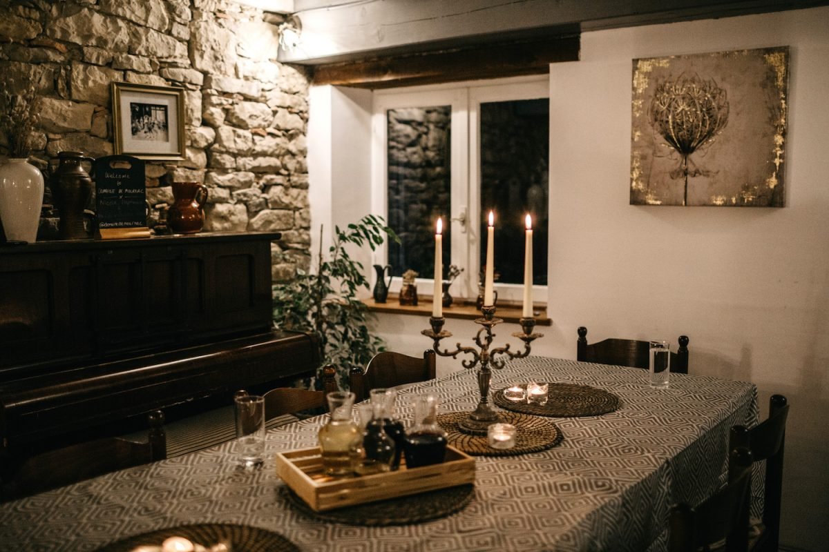 Guest accommodation is provided in the 14th century stone coach house which has been recently renovated and restored to provide a farmhouse feel with the modern comforts you need. The main house has a cozy livingroom to sit back and relax in the retreat house. Cool in the Summer thanks to the thick stone walls, yet warm in the Winter when the large fireplace is roaring. A perfect place to curl up with a book! The main house is furnished with a semi-professional kitchen and dining room that seats up to 20 guests. The main house has 3 bedrooms; Aude, Occitanie, and Mont Sec.